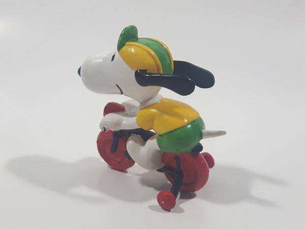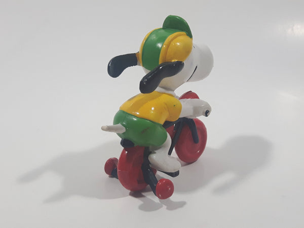 Vintage United Feature Peanuts Snoopy Learning To Ride A Bike On Bicycle With Training Wheels 2 1/2" Tall PVC Toy Figure Made in Hong Kong