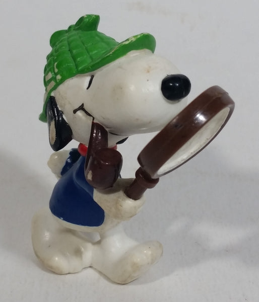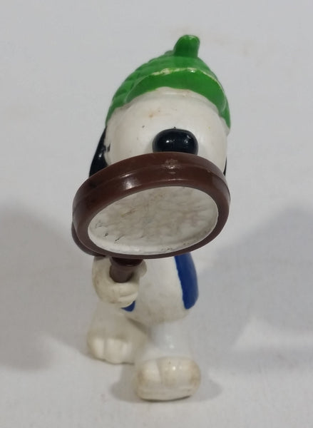 Vintage United Features Peanuts Snoopy Detective Sleuth Holding A Magnifying Glass PVC Toy Figure Made in Hong Kong