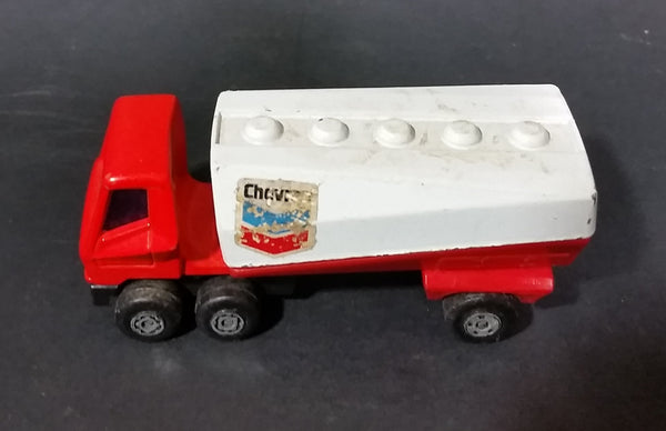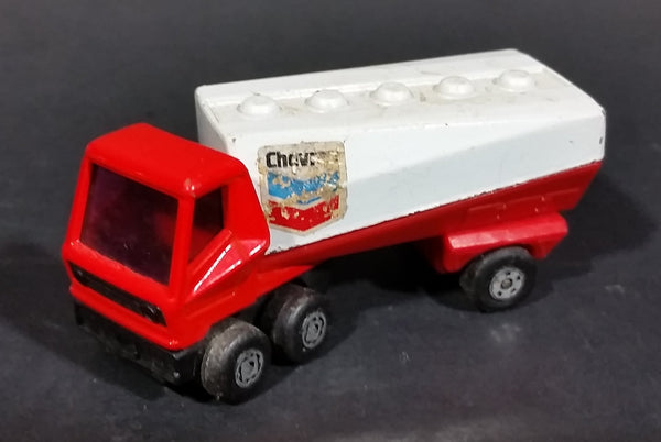 Vintage 1973 Lesney Matchbox SuperFast 900 Freeway Gas Tanker Truck and Trailer Chevron Red and White Die Cast Toy Car Vehicle