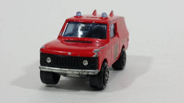 1980s Majorette Range Rover Fire Dept. District 3 Red No. 246 1/60 Scale Die Cast Toy Car Emergency Vehicle w/ Hitch