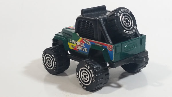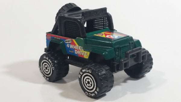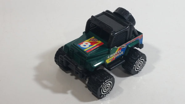 1987 Remco 4 Wheel Drive 4x4 Jeep STP Autolite Green and Black Die Cast Toy Car Off-Roading Vehicle