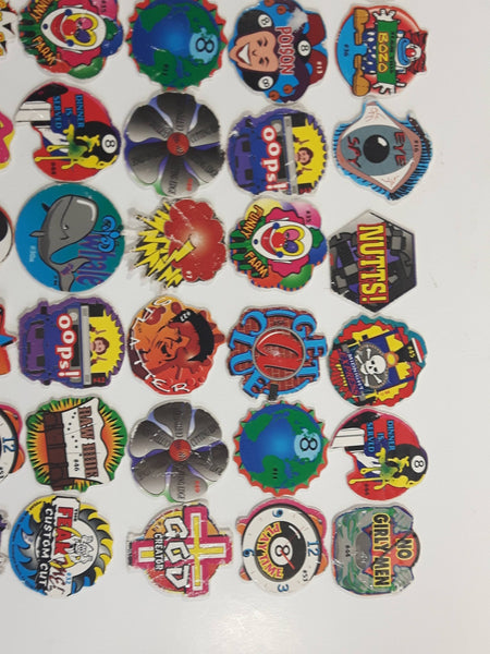 1990s Numbered Unique Shaped Pogs / Caps Lot of 56