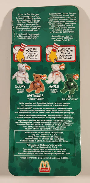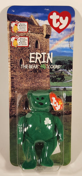 1999 McDonald's Ty Beanie Babies Erin The Bear Green 5" Tall Plush Stuffed Animal Toy New in Package