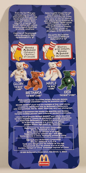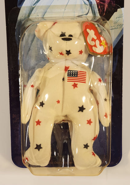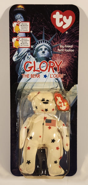 1999 McDonald's Ty Beanie Babies Glory The Bear White with Blue and Red Stars 5" Tall Plush Stuffed Animal Toy New in Package