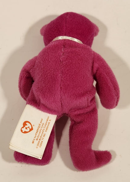 2004 McDonald's Ty Teanie Beanie Baby 'Burger The Bear Toy' Pink 5" Stuffed Plush Toy