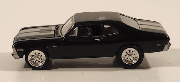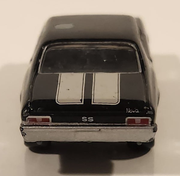 2012 Playing Mantis Johnny Lightning 1970 Chevy Nova SS Black with Silver Stripes 1/64 Scale Die Cast Toy Car Vehicle with Opening Hood
