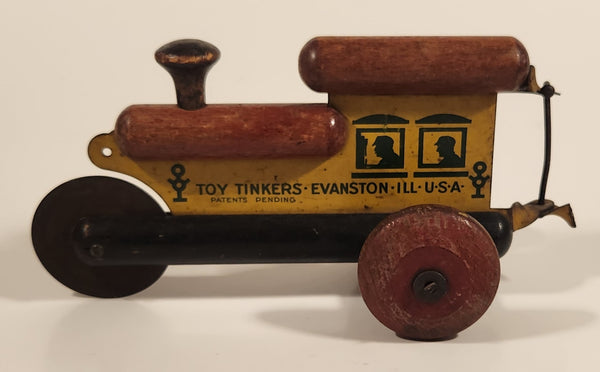 Antique 1930s Toy Tinkers Evanston Illinois USA Choo Choo Train 7 3/8" Tin and Wood Toy