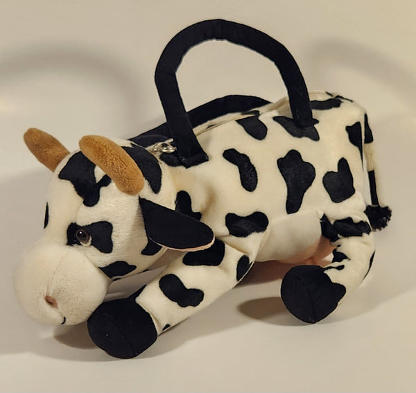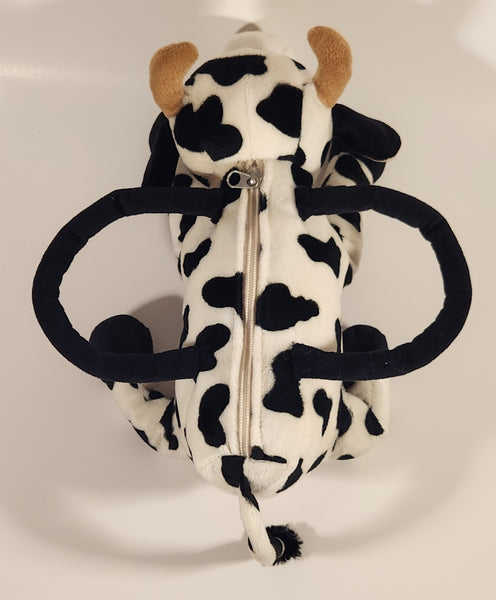 Black and White Cow 12" Stuffed Plush Toy Zipper Bag Purse