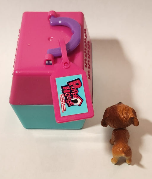 Kidsmania Puppy Love Dog Daschund 1 1/4" Plastic Toy Figure and Dog House Carrier