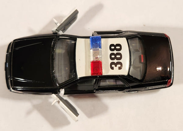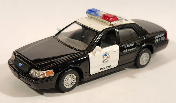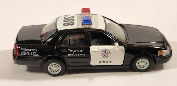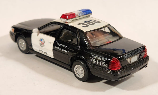 Kinsmart Ford Crown Victoria Police Interceptor #388 Black and White Pull Back 1/42 Scale Die Cast Toy Car Vehicle with Opening Doors