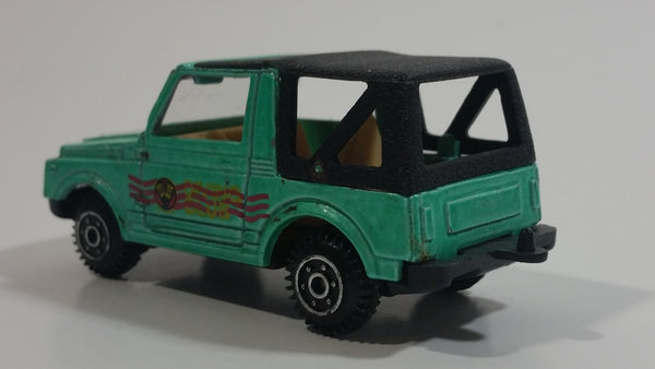 Rare 1986 Edocar Suzuki Samurai Jimny Watersports Diving Club Aqua Green with Black Roof Die Cast Toy Car Vehicle