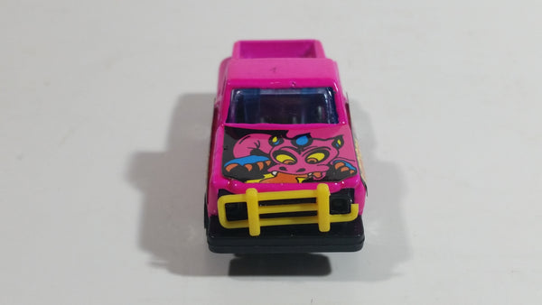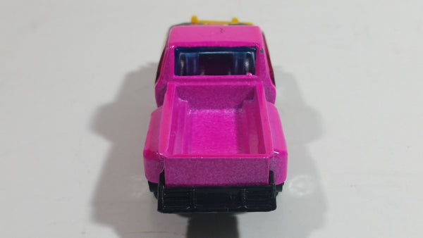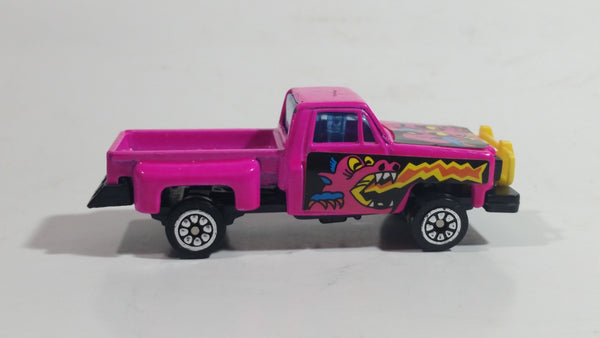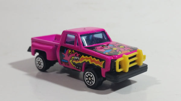 Unknown Brand Bright Hot Pink Ford F-150 Truck with Demon sticker Tampos and Yellow Push Bar Die Cast Toy Car Vehicle