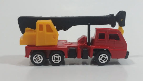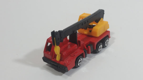 Unknown Brand Picker Crane Semi Truck Red and Yellow Plastic and Metal Die Cast Toy Car Construction Equipment Machinery Vehicle