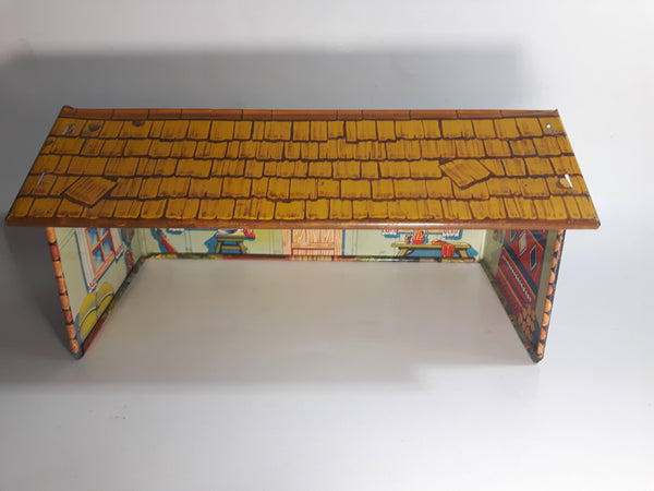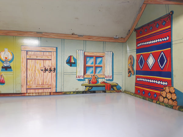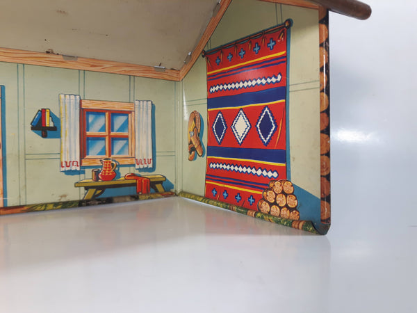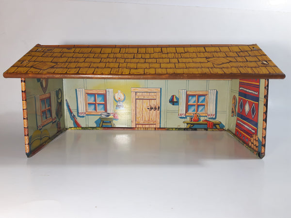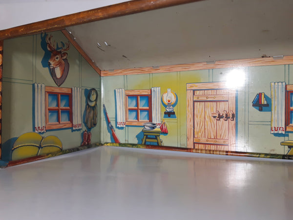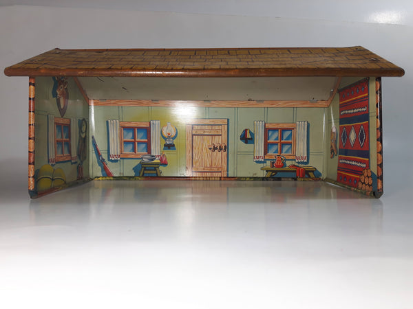 Vintage 1950s Marx Log Cabin Tin Toy House Building
