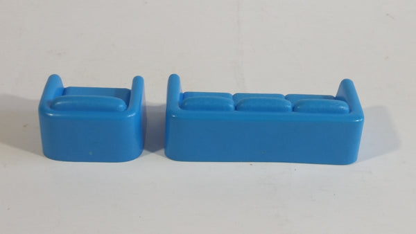 Vintage 1970s Arco Miss Merry's Plastic Doll Toys Living Room Blue 2 Piece Sofa Couch and Chair - Made in Hong Kong