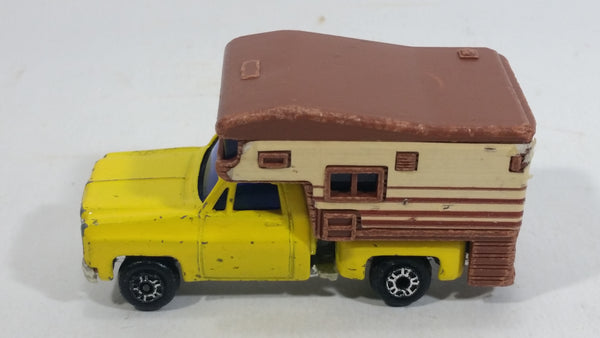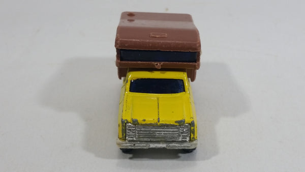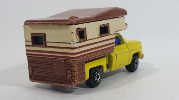 Vintage 1970s Chevy Stepside Pickup Camper Truck Yellow and Brown Die Cast Toy Car Vehicle - Hong Kong