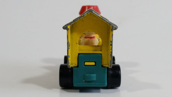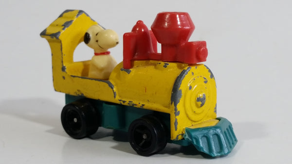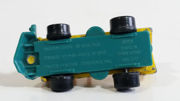Vintage Aviva 1950, 1959, 1966 No. C17 Snoopy Locomotvie Train Engine Yellow Teal Red Die Cast Toy Car Vehicle Made in Hong Kong Peanuts Comic Strip Cartoon Collectible