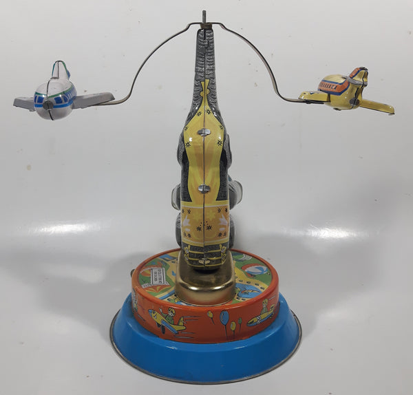 Vintage Elephant Carry Plane 10 1/2" Tall Tin Metal Key Wind Up Toy Made in China