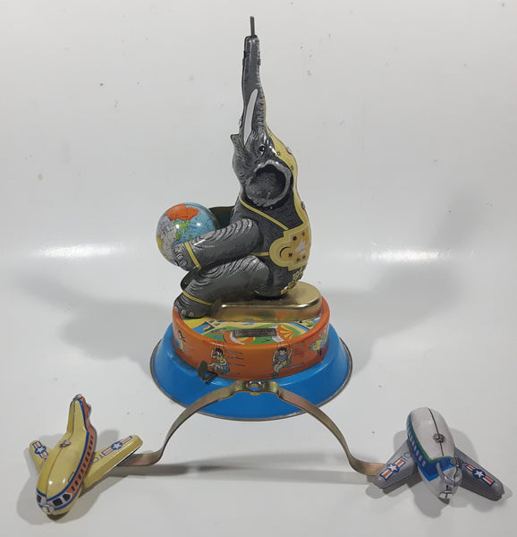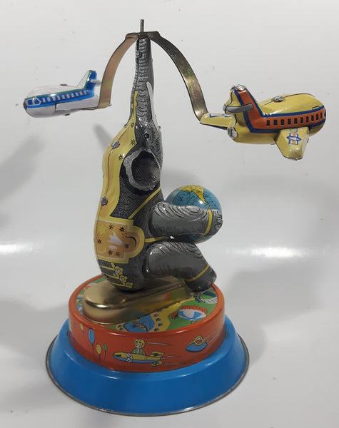 Vintage Elephant Carry Plane 10 1/2" Tall Tin Metal Key Wind Up Toy Made in China