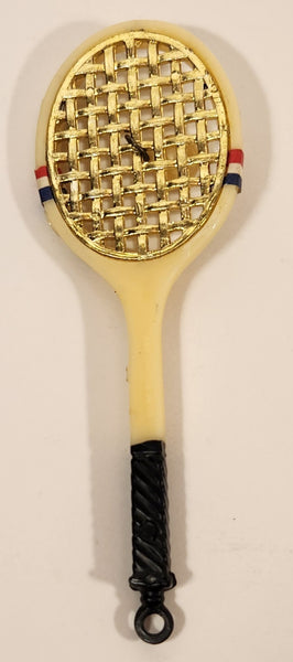 Vintage Luca Razza Tennis Racket with Ball Attached Miniature 4 3/4" Plastic Toy Pendant Made in Hong Kong