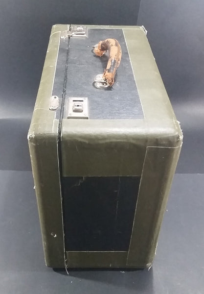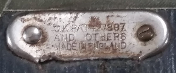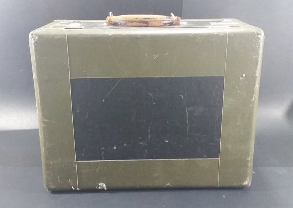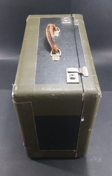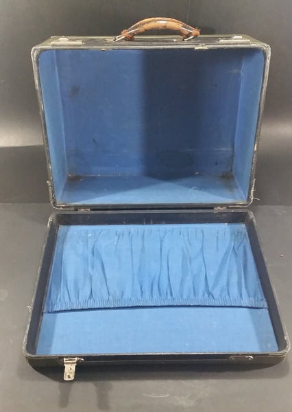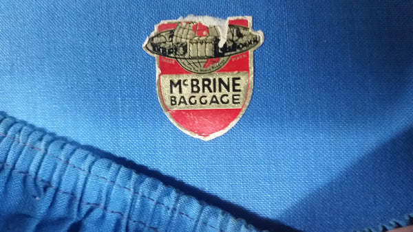 Vintage McBrine Travel Baggage Suitcase with Brown Leather Handle Blue Lining - Made in United Kingdom
