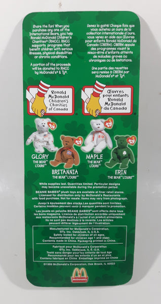 1999 McDonald's Ty Beanie Babies Erin The Bear Green 5" Tall Plush Stuffed Animal Toy New in Package
