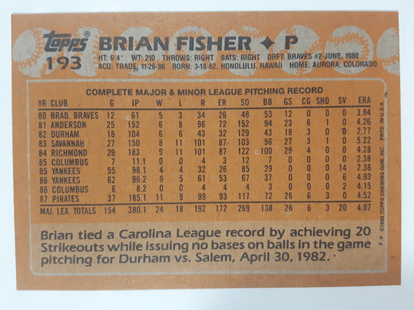 1988 Topps MLB Baseball Trading Cards (Individual)