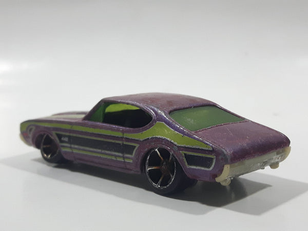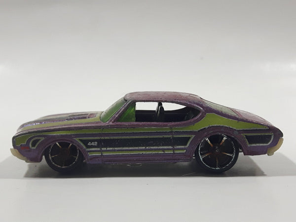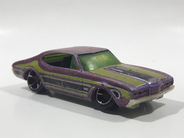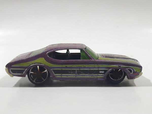 2009 Hot Wheels Muscle Mania Olds 442 Purple Die Cast Toy Car Vehicle