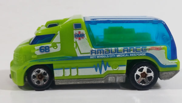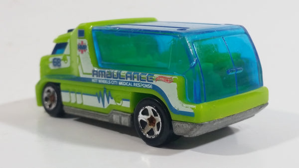 2011 Hot Wheels City Works Rapid Response Ambulance Lime Green Die Cast Toy Car Emergency Rescue Vehicle