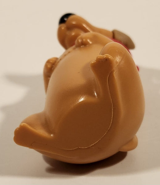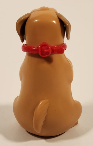Brown Dog Toy Sitting On Hind Legs With Red Bow Collar 2 3/4" Plastic Toy Figure