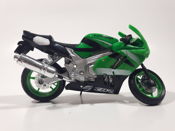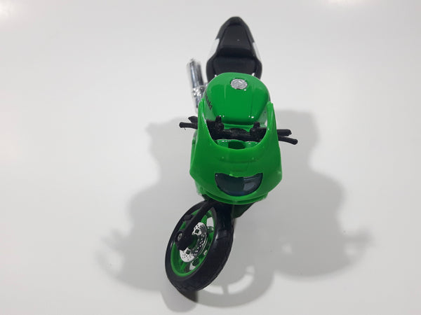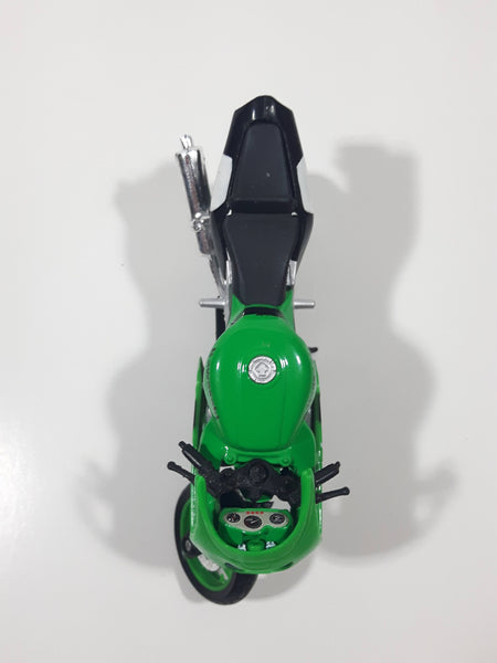Maisto Kawasaki ZX SR Motor Cycle Green Die Cast Toy Car Vehicle Twisted Front Wheel Support 4 3/4" Long
