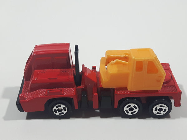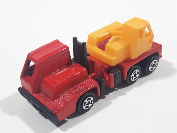 Unknown Brand Picker Crane Semi Truck Red and Yellow Plastic and Metal Die Cast Toy Car Construction Equipment Machinery Vehicle Missing Boom