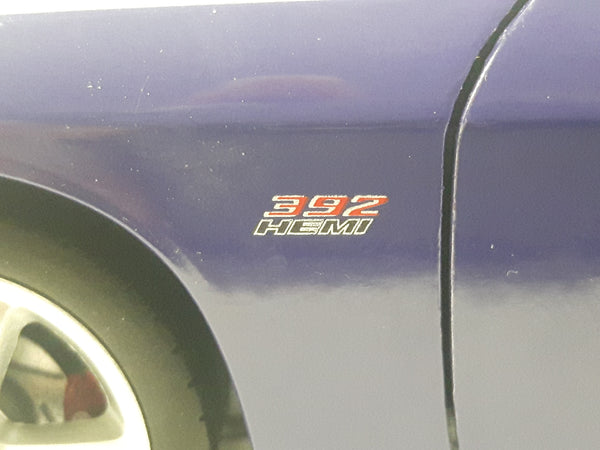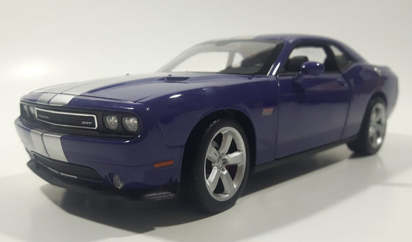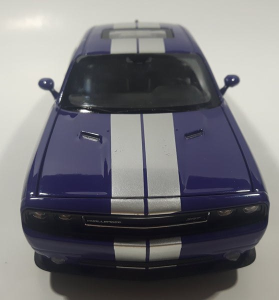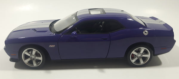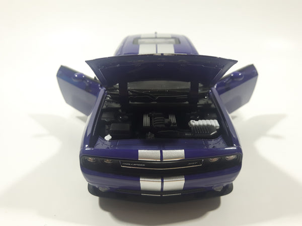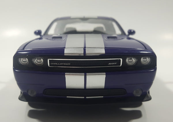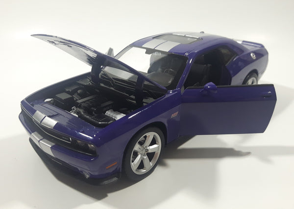2014 Welly No. 24049 Dodge Challenger SRT White Purple with Silver Stripes 7 1/2" Long Die Cast Toy Car Vehicle with Opening Doors and Hood