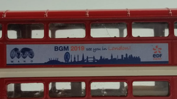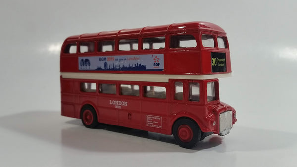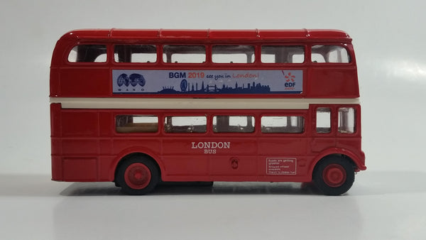Welly No. 99930 London Double Decker Bus EDF Energy BGM 2019 see you in London! Red Pullback Friction Motorized Die Cast Toy Car Vehicle - Missing a Tire