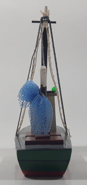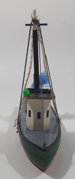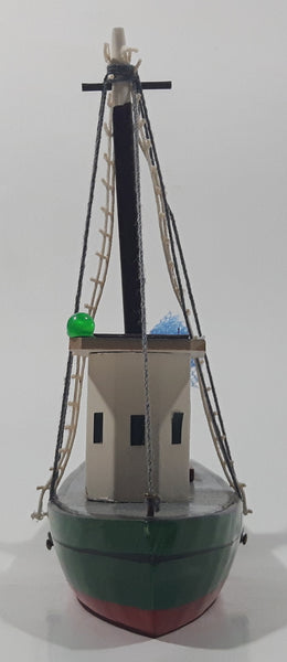 Fishing Trawler Sail Boat Detailed Red And Green Wooden Boat Model 7" Long