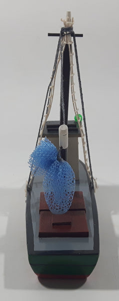 Fishing Trawler Sail Boat Detailed Red And Green Small Wooden Boat Model 7" Long