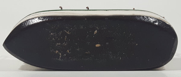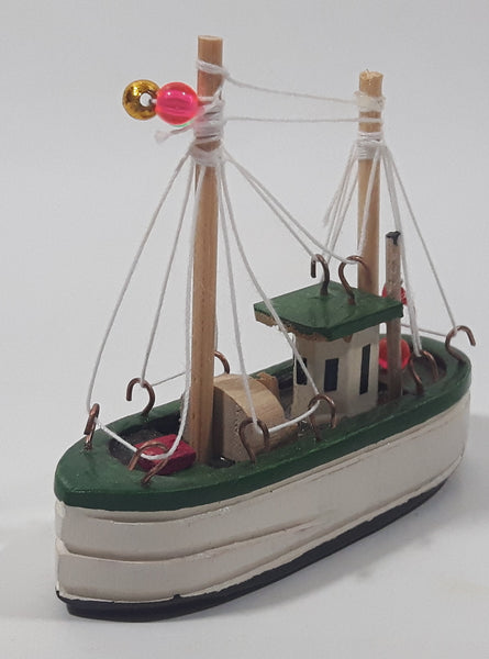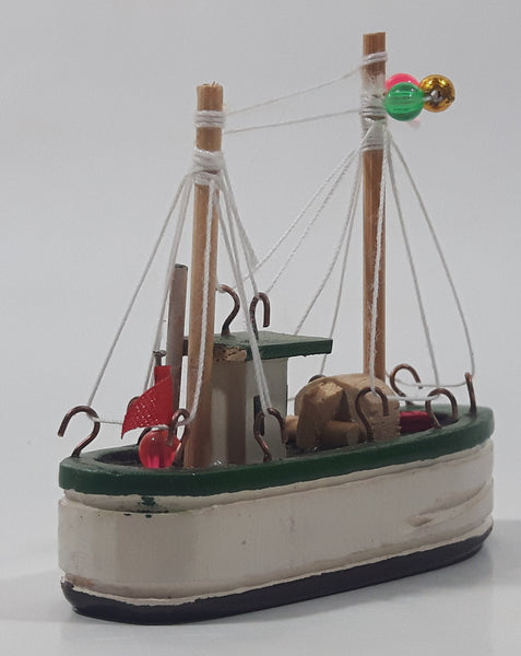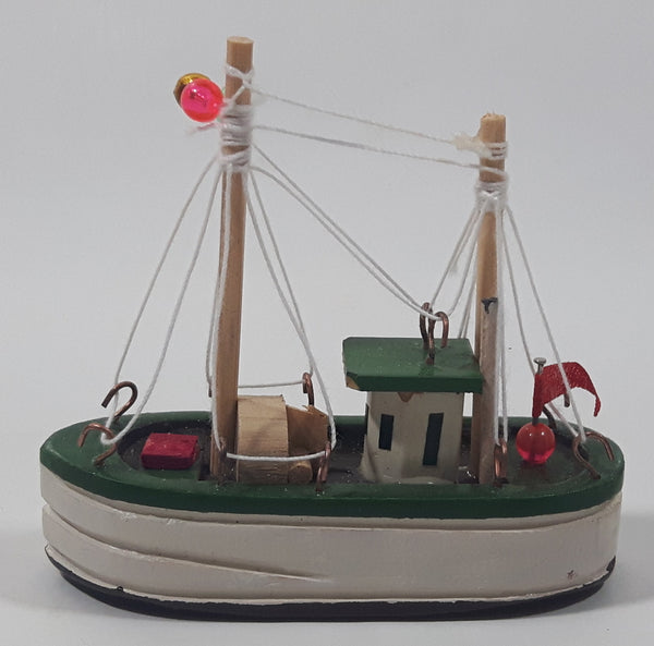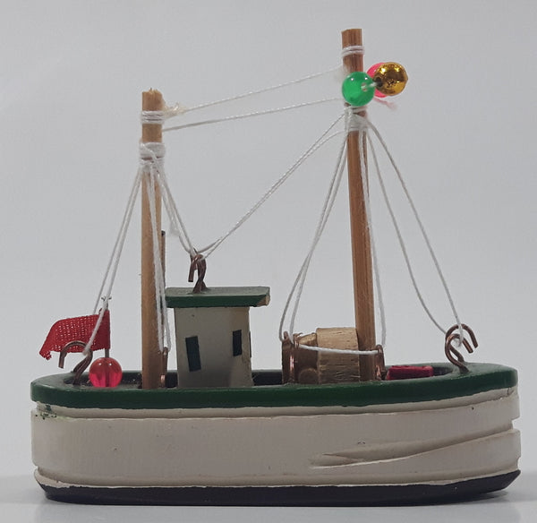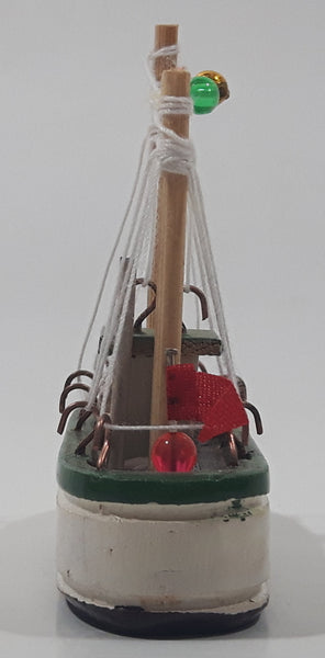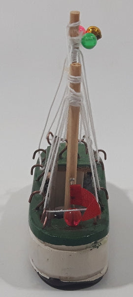 Fishing Trawler Sail Boat Detailed White And Green Small Wooden Boat Model 2 3/4" Long