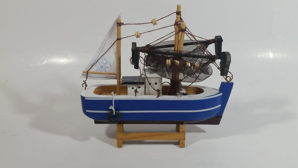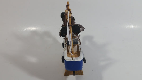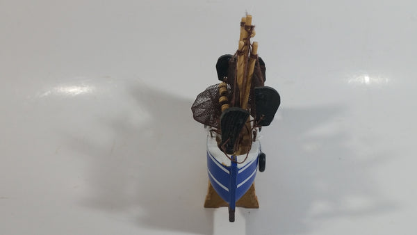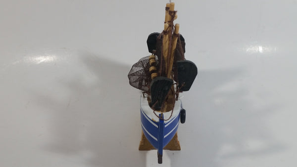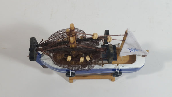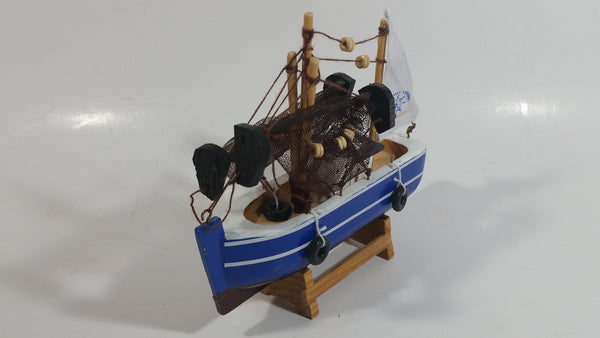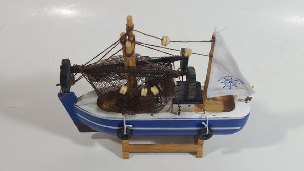 Welcome Aboard 6 1/2" Long Blue and White Wood Fishing Boat Ship