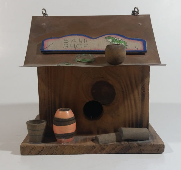 Folk Art Bait Shop Building Wooden Model with Copper Metal Roof Fishing Sportsmen Outdoors Cabin Rustic Collectible