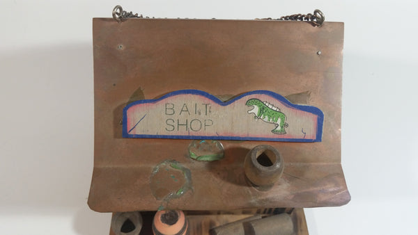 Folk Art Bait Shop Building Wooden Model with Copper Metal Roof Fishing Sportsmen Outdoors Cabin Rustic Collectible