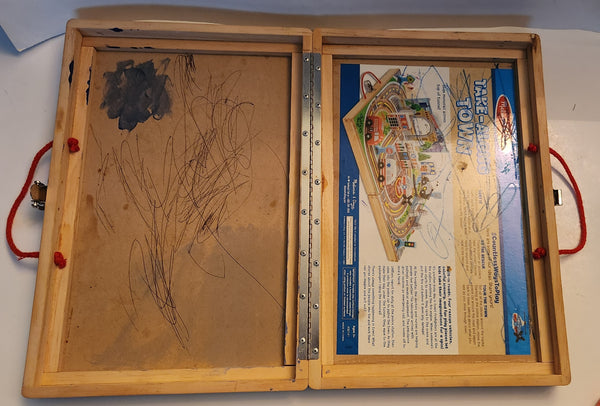 Good used condition with wear. Some wood separation. Comes with extra vehicles that are not in the original set. Does not have all of the pieces from the original Set. As seen in photos. View photos.