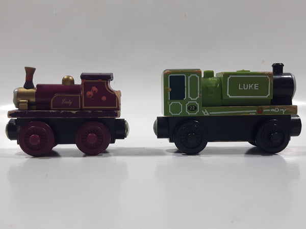 Thomas & Friends #22 Luke Green and Lady Pink Purple Wood Magnetic Toy Vehicles Damaged Corners