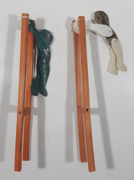 Vintage Acrobrat Trapeze Artists Wood Stick Toy 7" Set of 2