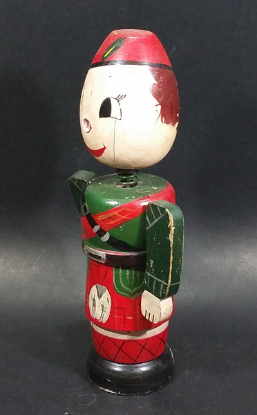 Vintage Wooden Soldier Nodder Bobble Head Coin Bank