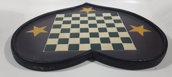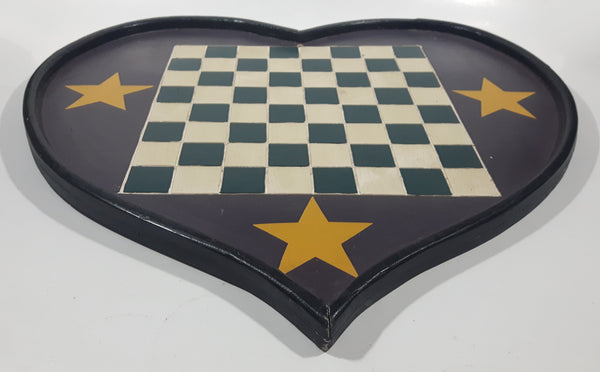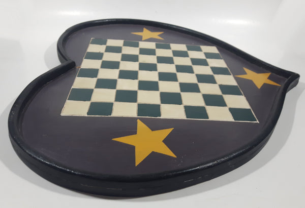 Heart Shaped Yellow Star Green and White Square Purple with Black Border Wood Chess Board Wall Hanging