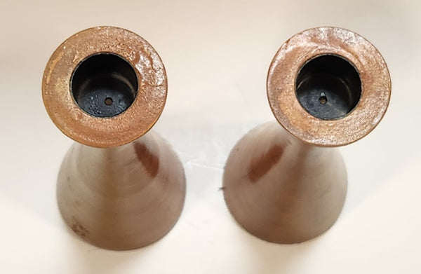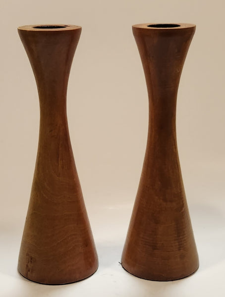 Teak Turned Wood 7" Tall Candle Holder Stands Set of 2