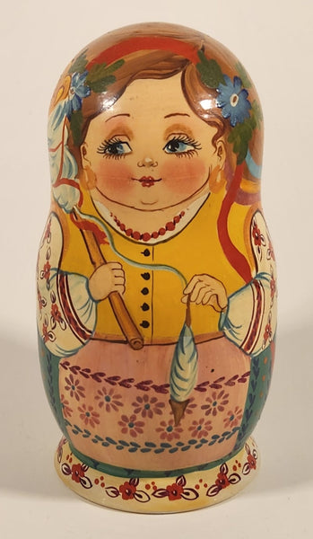 Vintage U.S.S.R Soviet Union Russian Hand Painted Women and Men Wooden Nesting Dolls Set of 5