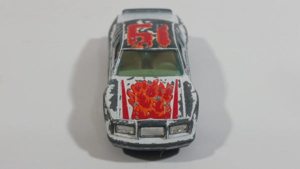 1980s Yatming Ford Thunderbird White 19 Red Flames No. 1033 Die Cast Toy Car Vehicle - Made in Thailand