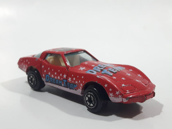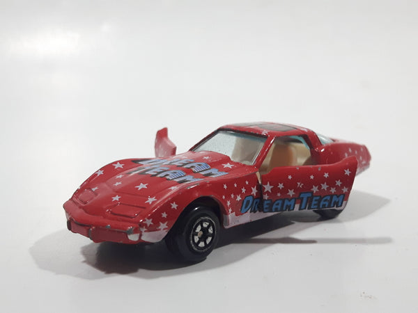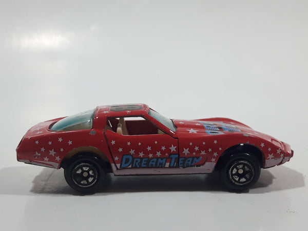 Yatming No. 1080 1980s Corvette Stingray Red #80 Dream Team Die Cast Toy Car Vehicle with Opening Doors