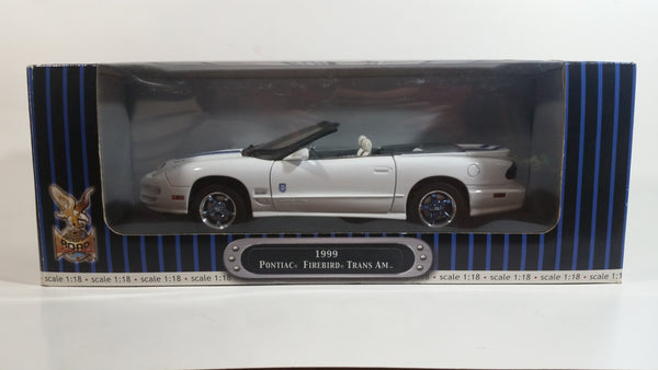 Yatming Road Signature Collector's Edition 1999 Pontiac Firebird Trans Am Convertible White with Blue Stripes 1/18 Scale Die Cast Toy Car Vehicle In Box